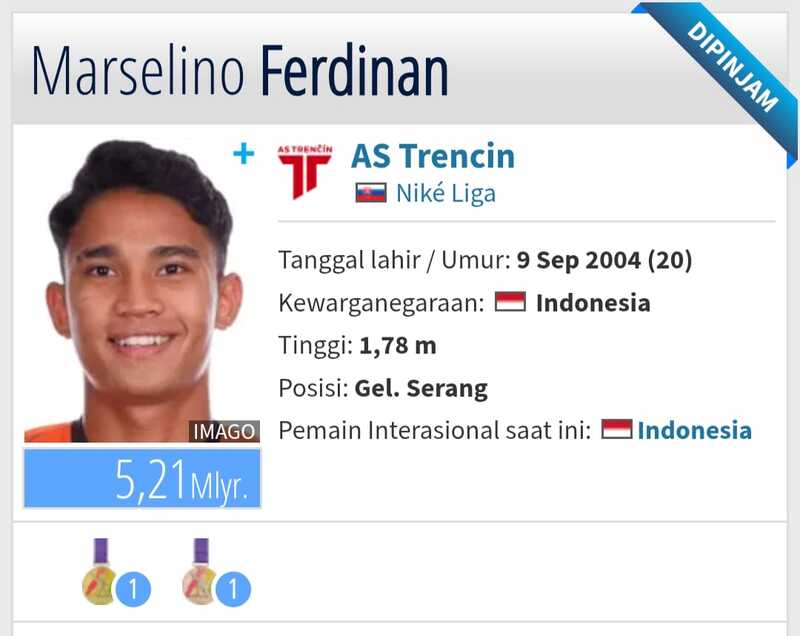 Nama Marselino Ferdinan sudah terdaftar di line up klub Liga Slovakia, AS Trancin dengan status peminjaman-transfermarkt.co.id-