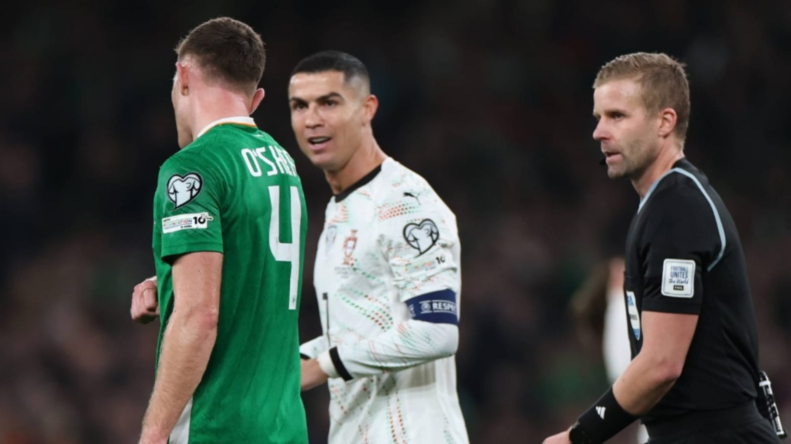 Cristiano Ronaldo (tengah) membuat Portugal bermain dengan 10 orang melawan Irlandia. --IG/@abolapt