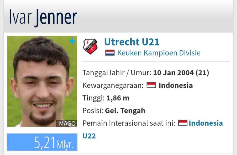 Dikutip dari laman transfermarkt.co.id, Ivar Jenner dilahirkan di Utrecht, Belanda, pada 10 Januari 2004.