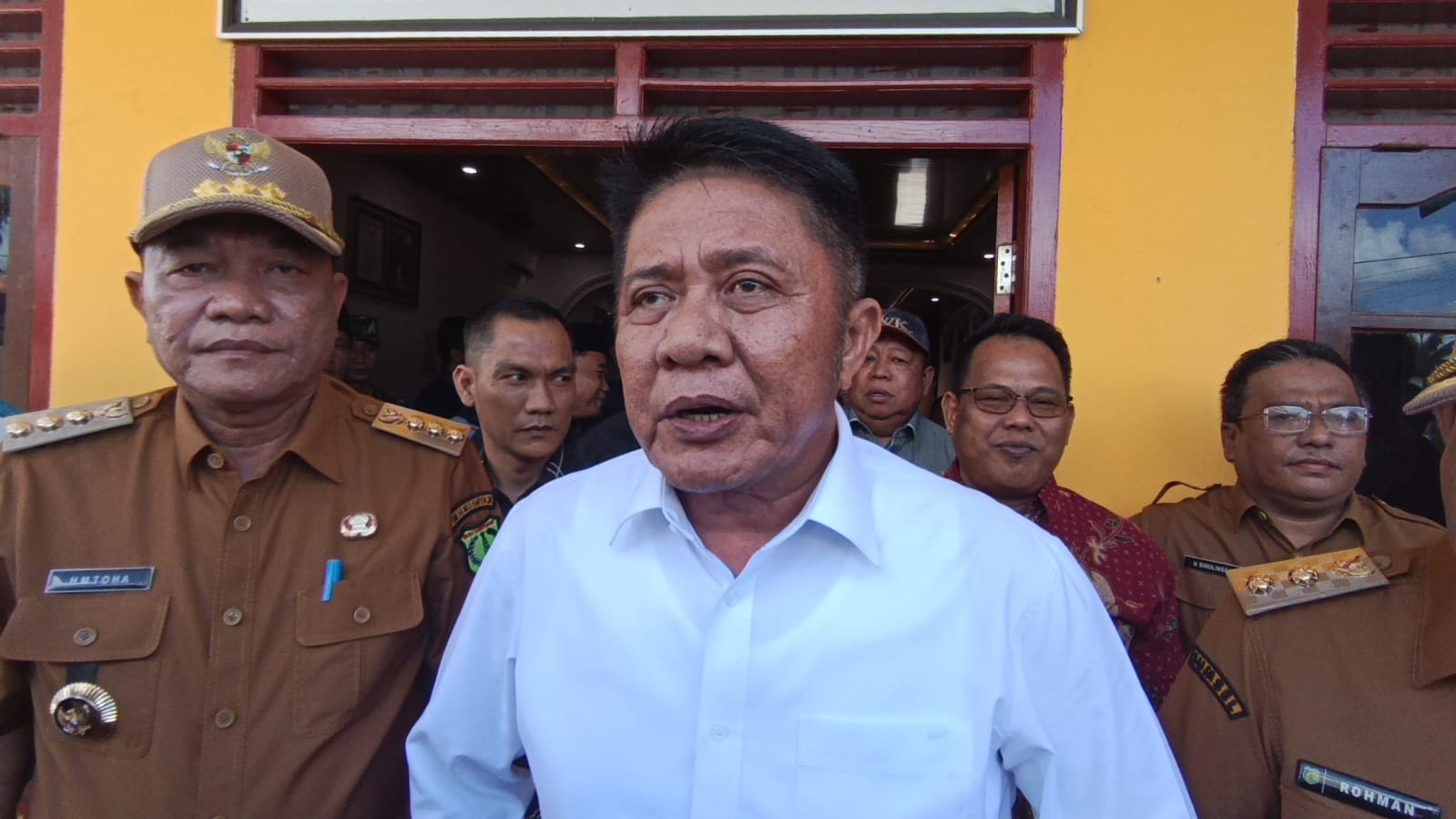 Gubernur Sumsel Herman Deru Didampingi Bupati Muba H Muhammad Toha ketika memberikan keterangan pers. -Foto Dinkominfo Muba-