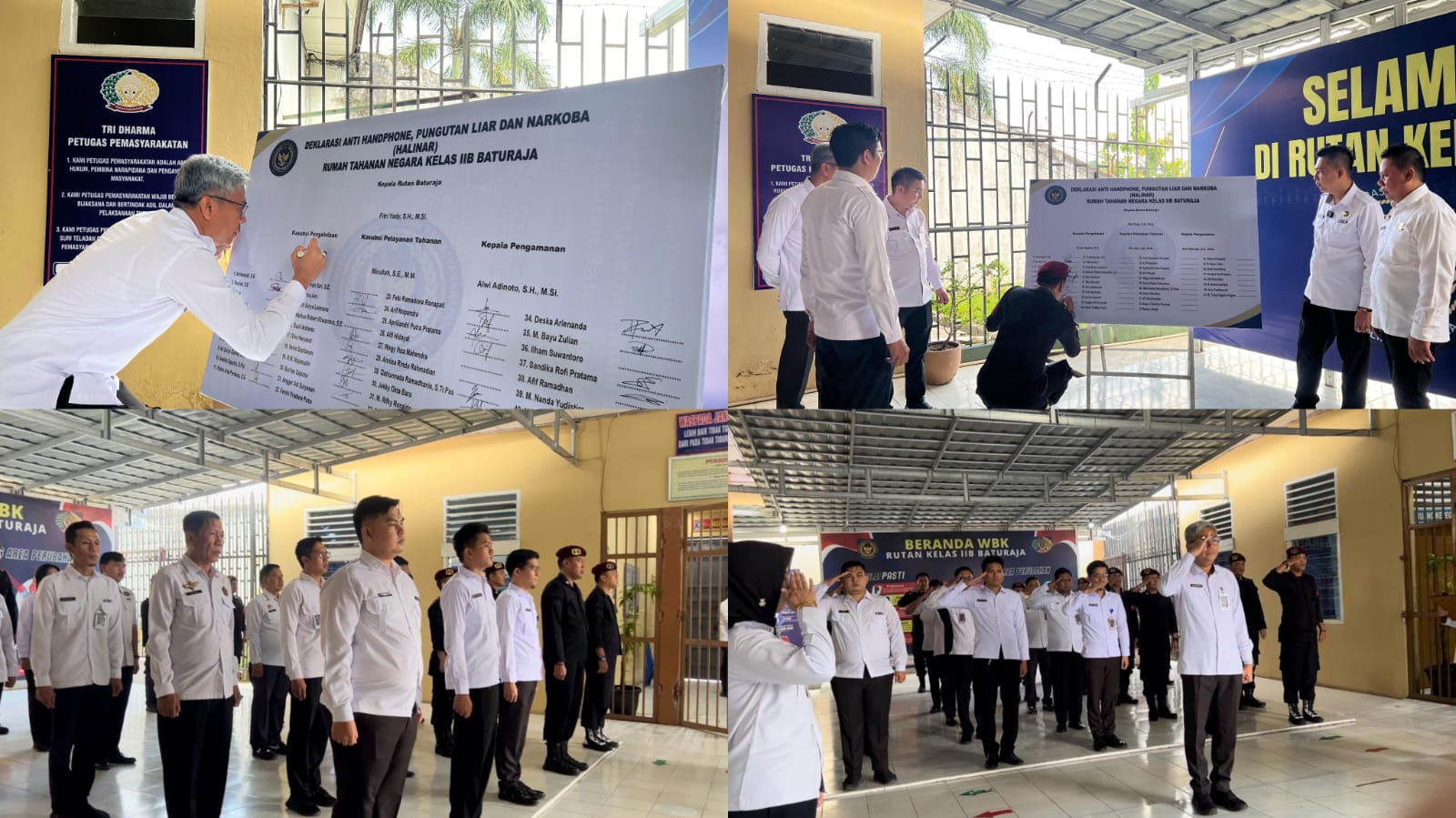 PALPRES.COM - Rumah Tahanan Negara (Rutan) Kelas IIB Baturaja menggelar apel deklarasi anti peredaran handphone ilegal, pungutan liar (pungli), dan narkoba (Halinar) di halaman kantor Rutan, Rabu (28/5/2025).
