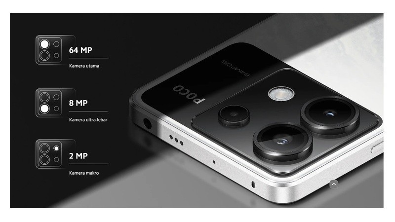 POCO X6 5G memiliki sistem kamera belakang dengan sensor yang besar, sehingga menghasilkan foto dengan kualitas yang baik dalam berbagai kondisi pencahayaan.