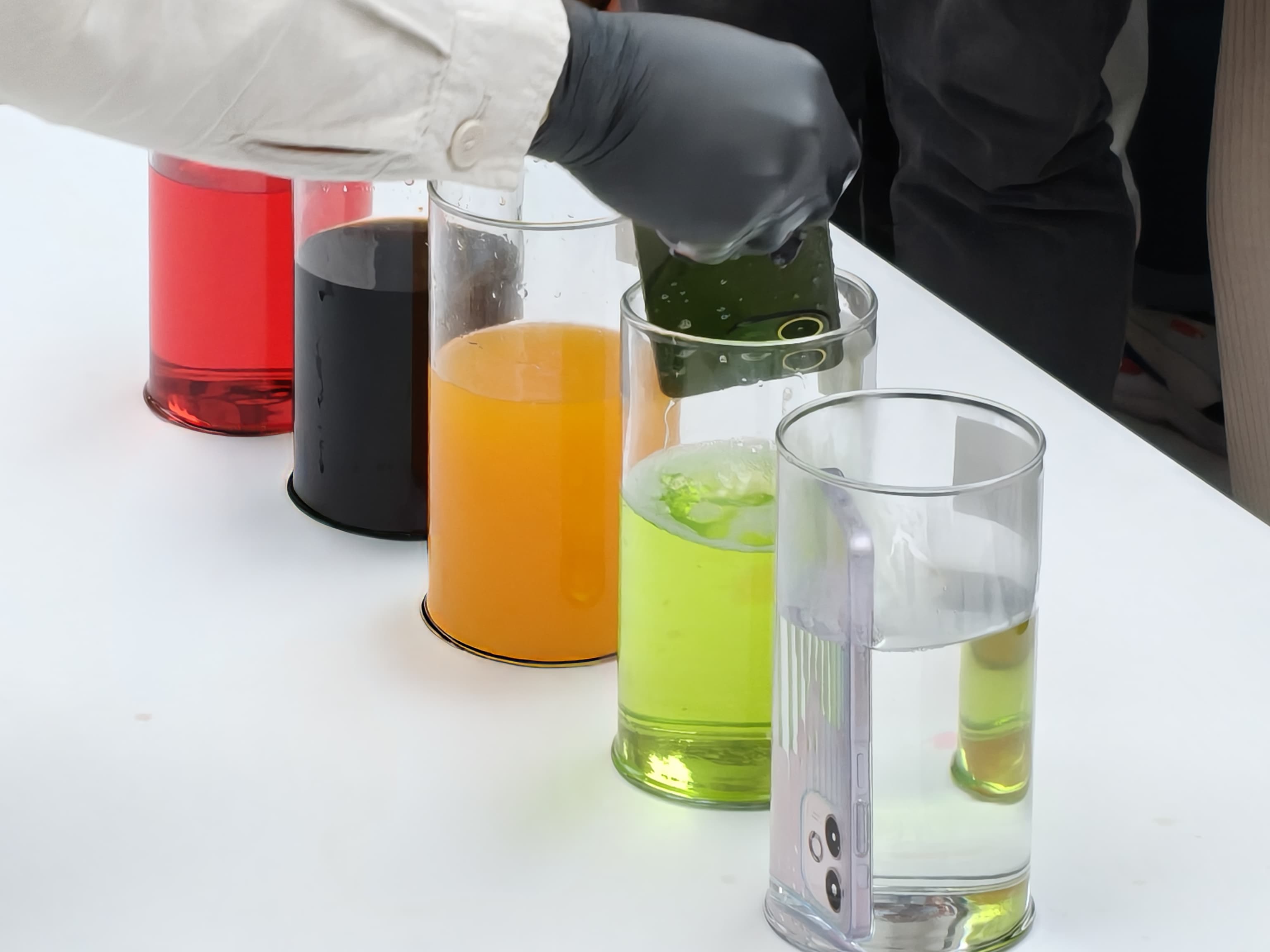 Oppo A5 Pro diuji berbagai macam cairan--Oppo Indonesia