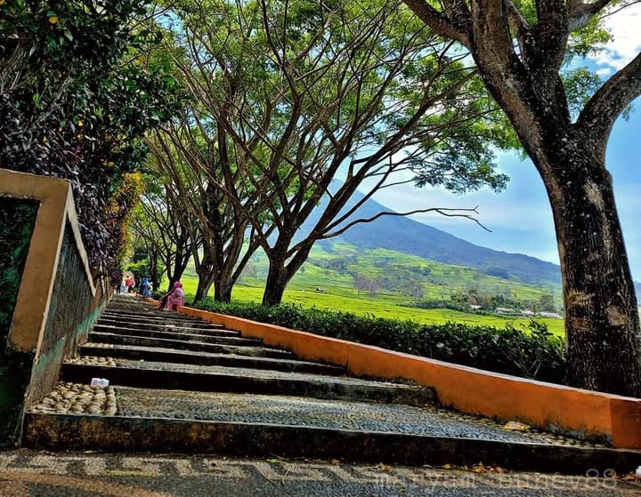 Dari Tangga 2001 kamu akan disuguhkan pemandangan Gunung Dempo dan luasnya perkebunan teh di lerengnya.